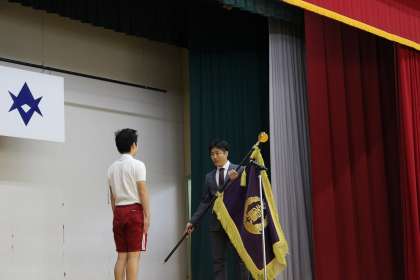 OB会より、校旗の巻頭、旗棒を寄贈していただきました。