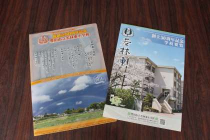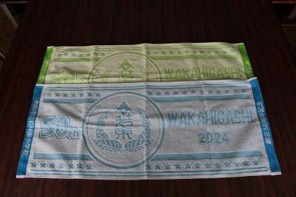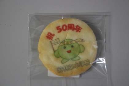 50周年の記念に、要覧やクリアファイル、タオル、わかまるくんせんべいを配付しました。