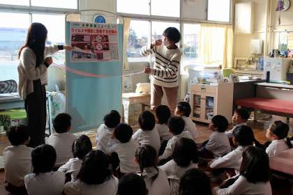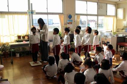 感染症予防についてのお話を聞き、身体測定をしました。