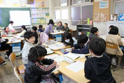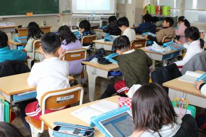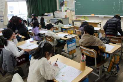 書写では、今まで習った漢字の復習をしました。国語の時間には、オリジナルかるたづくりをしました。算数の時間には、答えが同じになるかけ算みつけをしました。