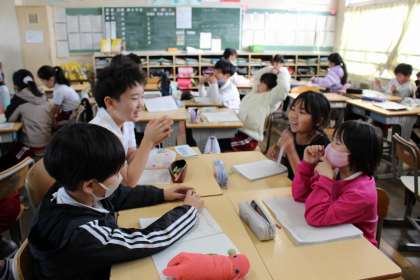 体育の時間には、ハードル走の練習をしました。算数の時間には、小数のわり算の筆算の仕方をグループで話し合いました。社会科の時間には、枝下用水の歴史をたどりました。