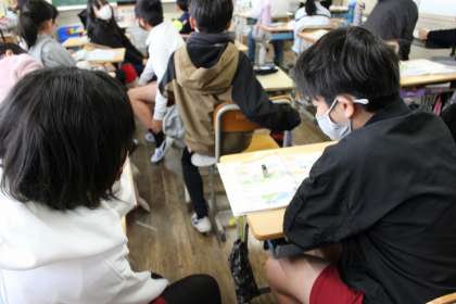 外国語の時間には、動物園の地図を見て、見たい動物のいる場所まで案内する表現に慣れ親しみました。