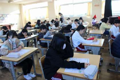 音楽の時間には、学年末テストをしました。社会科の時間には、各地の伝統を生かした工業について学習しました。