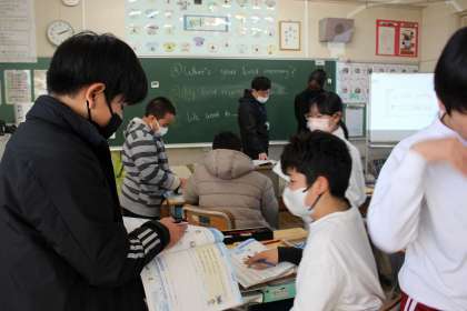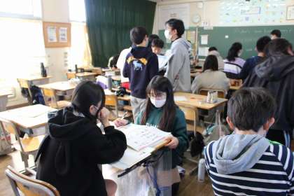 外国語の時間には、小学校生活の一番の思い出について、英語で伝え合いました。