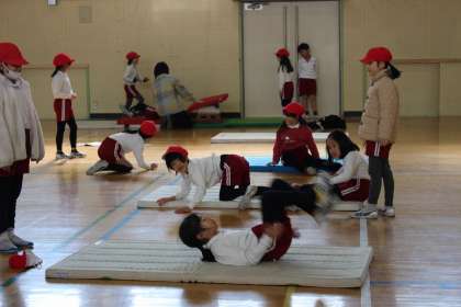 体育の時間には、なわとびをしたり、マット運動をしたりしました。