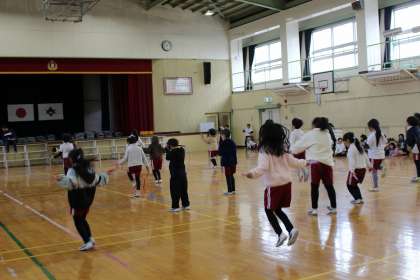 国語の時間には、反対の意味を表わす言葉見つをしました。体育の時間には、なわとび大会をしました。