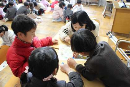 来年度入学予定の園児さんと交流会をしました。仲良く手遊びやすごろくをしました。