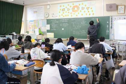 社会科の時間には、戦後、産業の発展によって人々の生活や社会がどのように変化したのかを調べました。