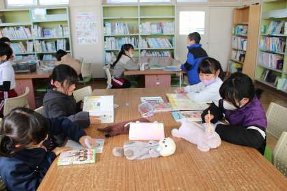 国語の時間には、言葉の音の数について学習しました。図書館で読書郵便を書きました。