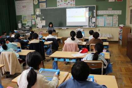 6年生を送る会に向けて、ダンスの練習をしています。学習用タブレットを使ってプログラミングの学習をしました。