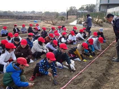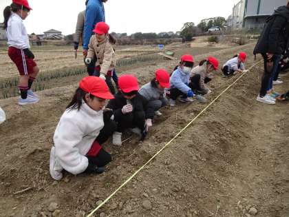 地域の方に教えていただきながら、ジャガイモの種芋植えをしました。
