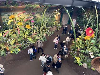 大倉庫をファミリー班で見学しています。