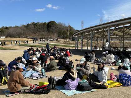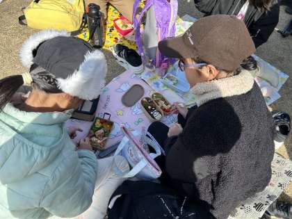 三日月広場で、お弁当を食べました。みんなで楽しく食べました。