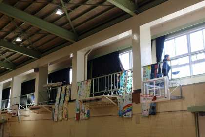 6年生を送る会に向けて、飾りを掲示したり、会の流れの練習をしたりしました。