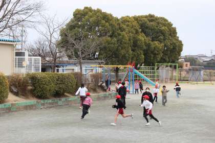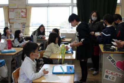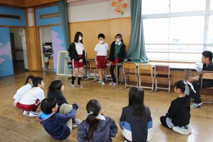 今年度最後のファミリー班遊びをしました。ドッジボールや鬼ごっこをしたり、クイズやゲームをしたりして交流を深めました。最後に6年生が下級生にメッセージカードをプレゼントしました。