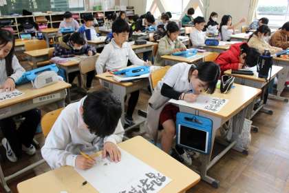 算数の時間には、□に入る数について考えました。書写では、作品集の表紙づくりをしました。自分の好きな言葉やお気に入りのイラストをかきました。