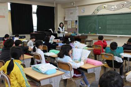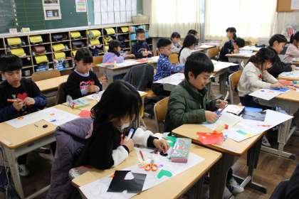 国語の時間には、ドラえもんの道具で欲しいものやその理由をテーマに文章を書きました。図工の時間には、オリジナルすごろくづくりをしました。音楽の時間には、今まで習った歌を順に歌ったり、リズム打ちを楽しんだりしました。