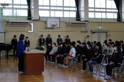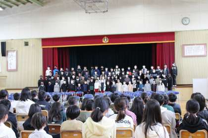卒業式の予行練習をしました。4年生も練習に参加し、6年生の立派な姿を見ることができました。6年生は、お世話になった先生方からメッセージをいただきました。