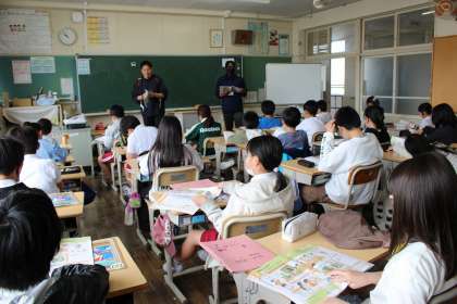社会科の時間には、1年間の学習内容を見て、見通しを持つことができました。また、4年生で覚えた都道府県名を復習しました。初めての外国語科の授業では、数字やアルファベットにふれました。