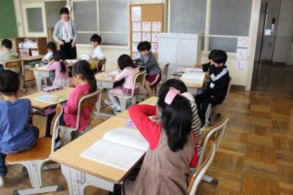 国語の時間には、「ひらがな かたかな」のテキストをつかって、いろいろな線の書き方を練習しました。