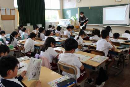 図工の時間には、草花の写真を見て、どんなおしゃべりをしているのかを想像しました。書写では、字を書く時の正しい姿勢について確認しました。