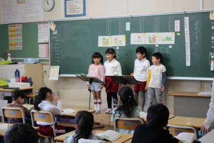 1年生は、「あめですよ」の音読発表をしました。2年生は、漢字の筆順や画数について学習しました。3年生は算数の学習で、図をかいて増えた数を求めました。