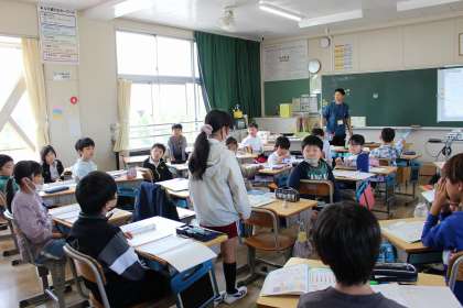 算数の時間には、折れ線グラフについて調べました。道徳の時間には、ヒーローをテーマに話し合いをしました。