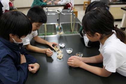 理科の時間には、様々な条件で種をまき、発芽する条件にあてはまるものは何かを検証しました。