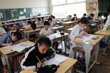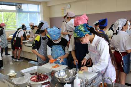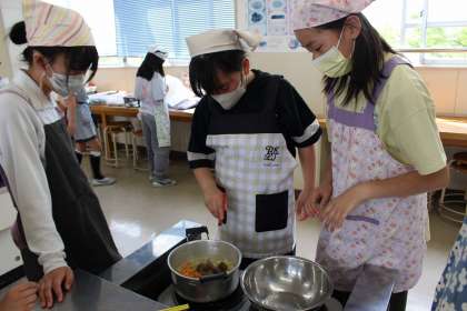 5年3組が、家庭科の時間にカレー作りをしました。学習ボランティアの方に支援していただきながら、安全に調理することができました。書写では、点画のつながりと字形を意識しながら硬筆「ふるさと」の練習をしました。