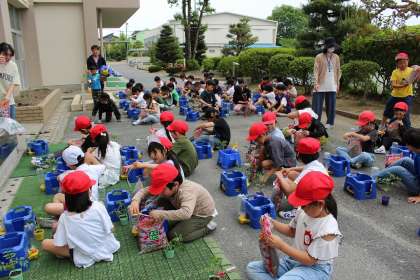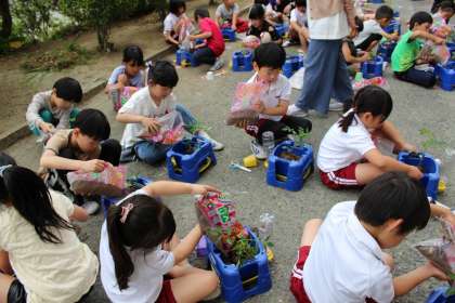 生活科の時間には、トマトの苗を植えました。