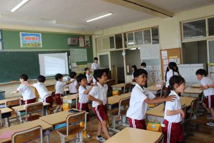 音楽の時間には、「じゃんけんぽん」の歌に合わせて、リズムをとったり、ジャンケン列車ゲームをしたりしました。