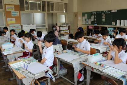 図工の時間には、絵の具を使って、自分が表現したい世界を描きました。