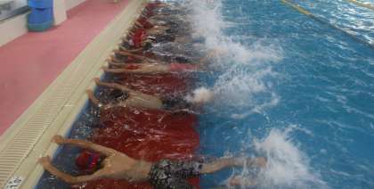 水泳学習がスタートしました。コース別にスイミングのコーチから、指導していただきました。