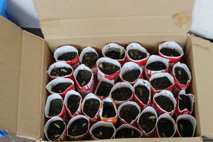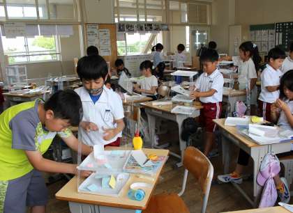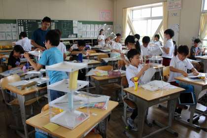 図工の時間には、「コロコロがーれ」の作品作りをしました。仕切りやコースを工夫し、ビー玉の動きを確認しながら作りました。理科の時間に植えたツルレイシが芽を出し始めました。