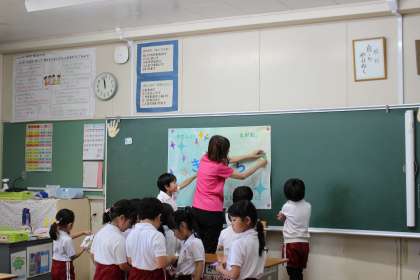 わっかのたねさんによる読み聞かせを聞きました。体の大事なところについて知りました。生活科の時間には、アサガオの間引きをしました。学活の時間には、級訓の掲示物づくりをしました。