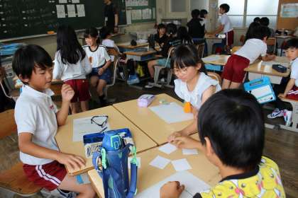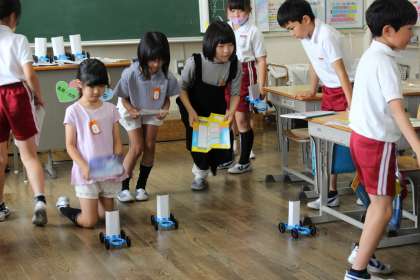 学活の時間には、自分の気持ちの表し方について考えました。理科の時間には、風で動く車について実験しました。社会科では、福岡市の土地の高さや広がりについて調べました。