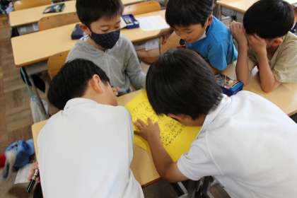 学活の時間には、係活動の掲示物やグッズづくりをしました。