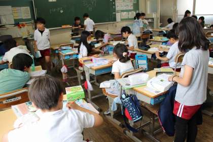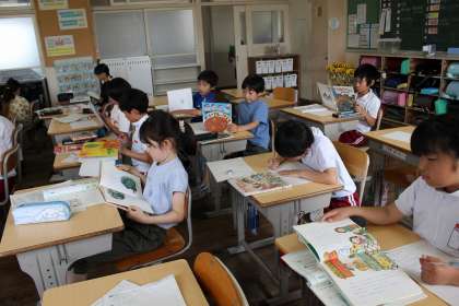 国語の時間には、漢字辞典や国語辞典を使って、漢字調べをしました。また、物語の紹介文を書きました。