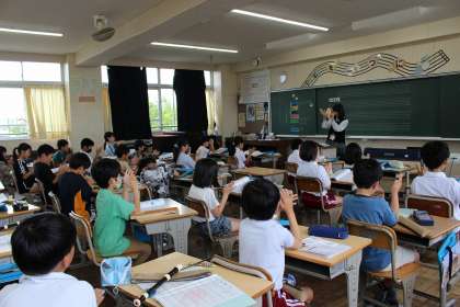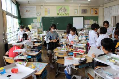 図工の時間には、友達の作ったコロコロがーれで遊び、工夫したところを見つけました。音楽の時間には、リズム打ちを楽しみました。