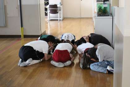 6月13日 ミニ避難訓練 公開日 2025/06/13 更新日 2025/06/13 各学年から いきいきタイムに予告なしの地震を想定したミニ避難訓練をしました。放送が入ると、素早く机にもぐったり、ダンゴ虫のポーズをとるなどして、自分の身を守ることができました。