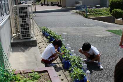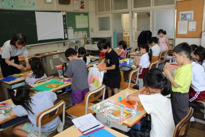 図工の時間には、紙を折ったり立てたりして、好きな世界を描きました。国語の時間には、好きな動物とその理由について話しました。生活科の時間には、アサガオの観察をしました。つるが伸びてきました。