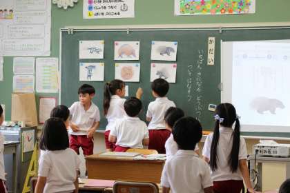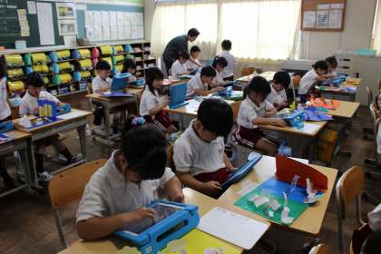 国語の時間には、好きな動物はどれかを選び、理由を考えました。図工の時間には、学習用タブレットを使って、作品の鑑賞をしました。