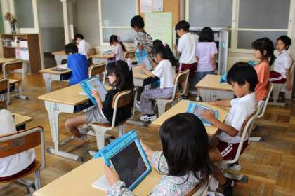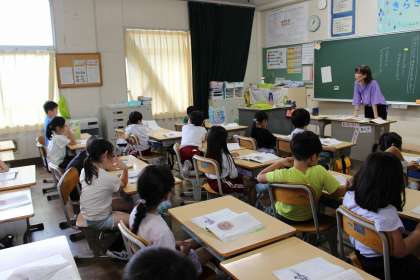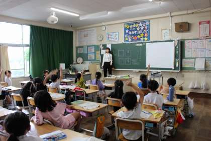 国語の時間には、アルマジロやスカンクの身の守り方について読みとりました。算数の時間には、キュビナを使ってドリル学習をしました。