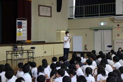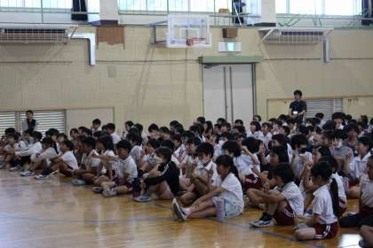 保健委員が、若林東小の視力の実態調査を発表し、講師の先生から、目を守るための方法についてお話をしていただきました。