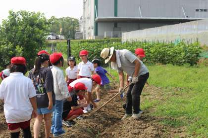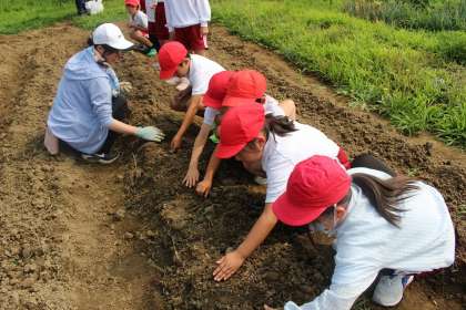 地域の方に教えていただきながら、大豆の種うえをしました。