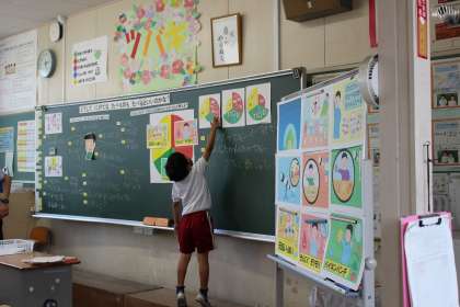 外国語活動では、ALTに自分の好きなゲームやキャラクターなどを伝えました。学活では、どうして苦手なものも食べなければいけないのかを考え、バランスよく食べることの大切さを知り、自分の目標を立てました。