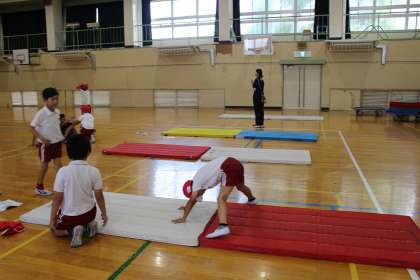 体育の時間には、マット運動で、前転や後転、開脚前転など技をつなぐ練習をしました。保健体育では、目に優しい照明や、換気の効果などについて学習しました。