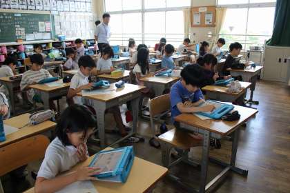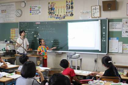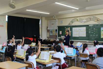 総合では、大豆のよさと自分の食生活との関係を調べました。算数の時間には、どんな計算になるのかを図を使いながら考え、問題を解きました。音楽の時間には、「ゆかいな木きん」を歌ったり、リズム打ちをしたりしました。