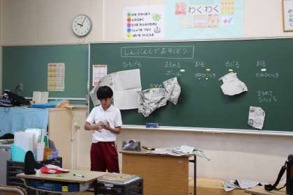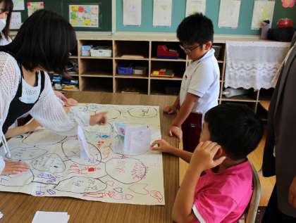 国語の時間には、野菜の観察日記をかきました。自立活動では、自分たちで作ったオリジナルすごろくで、ルールを守って楽しく遊びました。図工の時間には、新聞紙を丸めたり破いたりして、いろいろな形づくりを楽しみました。