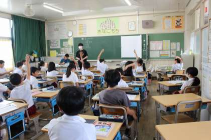 理科の時間には、2枚の夜空の写真を見て、星について気が付いたことを話し合いました。